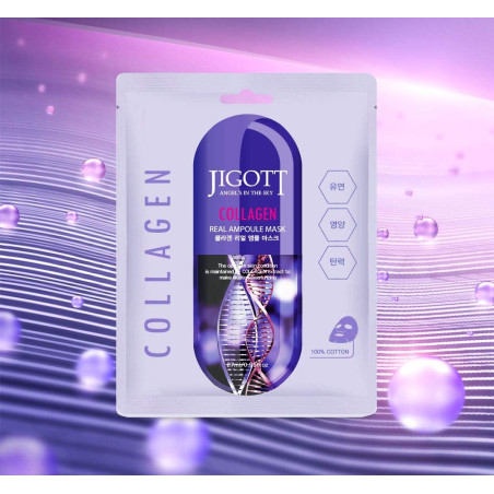 La máscara de ampollas de colágeno es eficaz para humedecer y nutrir la piel, ya que el extracto de colágeno y el extracto de cultivo de callos de ginseng le dan una sensación hidratante refrescante a la piel. Como la hoja de máscara contiene extracto de pepino, extracto de patata, extracto de perlas, extracto de flor de loto y extracto de granada, ayuda a suavizar suavemente la piel y crear una piel limpia y saludable.