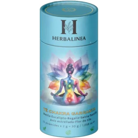 El Té Chakra Garganta de Herbalinea ha sido creado para acompañarte en momentos de claridad, expresión y bienestar interior. Su mezcla natural combina menta, eucalipto, regaliz, salvia, tomillo, anís estrellado y flor de tilo, ofreciendo un sabor fresco y herbal que invita a la calma. Cada pirámide libera un aroma suave que ayuda a crear un ambiente relajante ideal para meditar, descansar o simplemente disfrutar de un instante de equilibrio. El envase incluye 15 pirámides biodegradables, diseñadas para infusionarse de forma óptima, potenciando sabor y aroma de manera respetuosa con el entorno. Su presentación en tubo premium lo convierte en una opción perfecta para regalar o para integrar en rituales de autocuidado y bienestar. Disfrútalo en cualquier momento del día y permite que sus notas refrescantes te aporten serenidad, armonía y una sensación renovada de equilibrio interior.