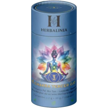 Herbalinea Té Chakra Tercer Ojo – Infusión Natural de Té Blanco Pai Mu Tan, Lavanda, Melisa, Aciano y Ginkgo – 15 Pirámides Premium – Claridad, Intuición y Bienestar Interior